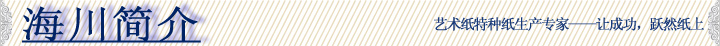上海海川纸业有限公司,是一家集特种纸研发到销售为一体的大型特种纸企业,总部位于上海市松江区永丰都市产业园区。这里是上海文化的发源地,历史悠久,风光迤逦,交通发达,经济繁荣。